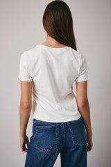 The Hallie Graphic Print Baby Tee is your go-to piece for effortless cool. This fitted crew neck tee features an eye-catching graphic print that adds personality to any outfit. Perfect for layering or wearing solo, it's the kind of wardrobe staple that works as hard as you do—whether you're running errands or hanging with friends. Soft, comfortable, and undeniably stylish.