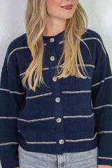 Jade Thin Stripe Button Down Cardigan, Navy