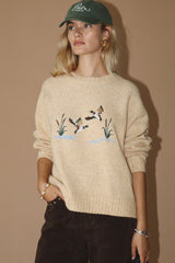 Meet your new favorite sweater—the Jamie Embroidered Duck Knit in a gorgeous butter shade. This whimsical piece features an eye-catching textured duck design that adds personality to any outfit. Long sleeves keep you warm while the cozy round neckline offers timeless appeal. Whether you're lounging at home or heading out for adventure, this playful knit delivers comfort without taking itself too seriously. A delightful addition to your collection that's bound to become a go-to favorite.