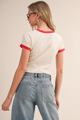 Les Sardines Ringer Tee, Natural/Red