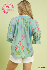 Maeve Floral Top, Seafoam