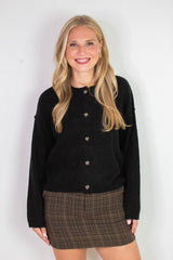 Cozy up in the Melina Roll Neck Cardigan, designed to keep you both snug and stylish. Featuring a playful button-down front, long sleeves for extra warmth, and charming ribbed knit trim, this black cardigan is perfect for layering on chilly days. Embrace comfort with a twist of fun!
