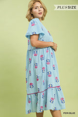 Sandy Embroidered Midi Dress, Peri Blue | Plus Size