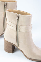 Step up your style game with the Timmy Wrapped Buckle Dress Bootie in sleek pale camel faux leather. Featuring a shiny silver buckle detail and a comfortable heel, these booties add a playful, dressy touch to any outfit. The inner zipper closure makes slipping them on and off a breeze while keeping your look polished and put-together. Perfect for days when you want to feel confident and chic without sacrificing comfort!