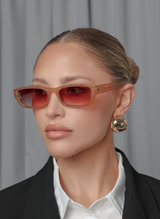 See the world through a stylish and quirky lens with Mabel from Otra. This pair features a transparent coffee frame and brown lenses, providing 100% UV protection. Plus, you'll receive a soft cream vegan case for convenient storage. Get ready to rock that playful look!