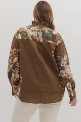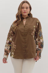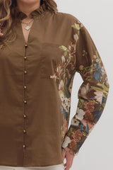 Ember Floral Sleeve Buttoned Blouse, Brown | Extended Sizes