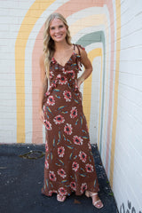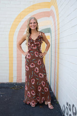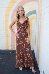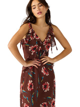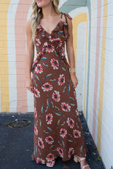 Adalina Floral Ruffled Maxi Dress, Brown | Steve Madden