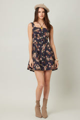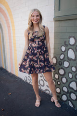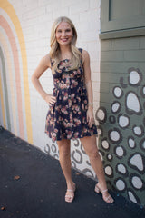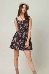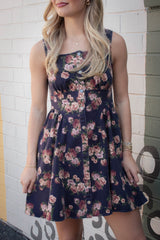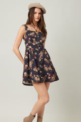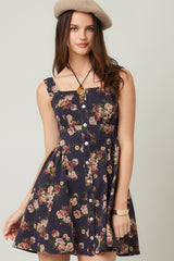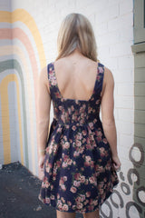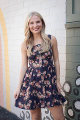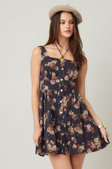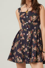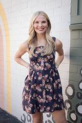 Embrace sunny days with the Opal Stone Washed Floral Denim Dress in navy. This playful sleeveless piece features a charming floral print, button-down front, and a trendy square neckline. The smocked back and elastic waist ensure a comfy, flattering fit, while handy side pockets keep essentials close. Perfect for effortless style with a fun, autumn vibe.