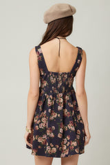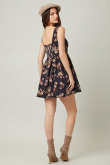 Opal Stone Washed Floral Denim Dress, Navy