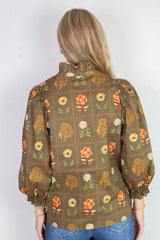 Emilia Floral Print Ruffle Detailed Top, Olive