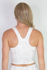 The Formation Leo Top in Crystal is a cropped, racerback tank designed to keep you moving with built-in support. Its sleek V/Scoop neck and sleeveless cut add just the right touch of playful flair, making it perfect for everything from workouts to weekend adventures!