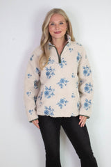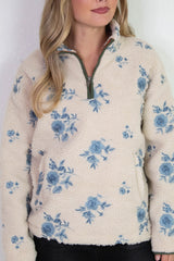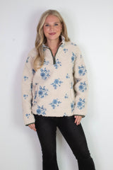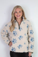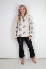Stay cozy and stylish with the Poppy Anorak Jacket in Cream Blue. Featuring a charming embroidered poppy print, long sleeves, and a high mock neck with a half zip closure, it’s perfect for those brisk days. The sherpa lining adds warmth while contrast trim and handy side pockets bring extra flair and function. This jacket is your new go-to for playful comfort!