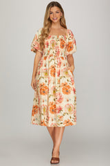 Demi Smocked Floral Midi Dress, Rose