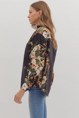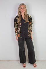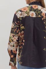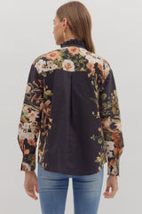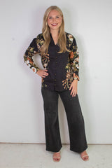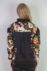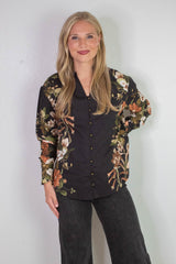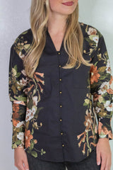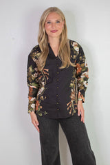 Ember Floral Sleeve Buttoned Blouse, Black