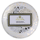 Voluspa's Mini Tin Candle, Mokara is crafted with the finest fragrances to create a luxurious and pleasing olfactory experience. Infused with mokara, this mini tin candle has a burn time of up to 25 hours. Perfect for any home or office décor.