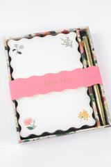 Add a touch of elegance to your notes with the Dahlia Note Writing Set by Rifle Paper Co. Featuring 130 warm white linen-textured flat sheets adorned with metallic gold accents, this set makes every message shine. Write smoothly with the included gold pen filled with black ink, and keep your stationery stylishly organized in the reusable desk box. Crafted from acid-free paper, these notes are perfect for thoughtful letters or quick reminders that stand out with charm!