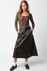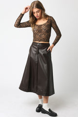 Carter Faux Leather Midi Skirt, Dark Chocolate