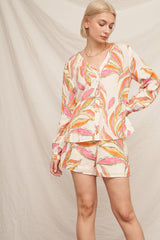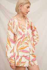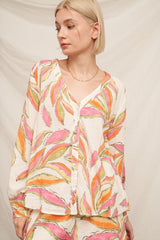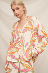 Introducing the Raya Button Down Blouse in Ivory Multi—a versatile piece that effortlessly transitions from office to weekend. Crafted from a breathable cotton-rayon blend, this long-sleeve button-down features an eye-catching printed design that adds personality to any outfit. The soft fabric drapes beautifully while maintaining its shape, making it perfect for layering or wearing solo. Hand wash cold and line dry to keep this wardrobe essential looking fresh season after season.