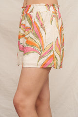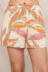 Raya Elastic Waist Shorts, Ivory Multi