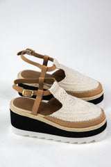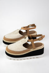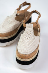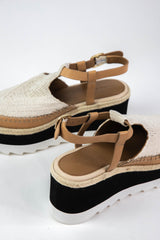 Elevate your style with the Morning in Mykonos Espadrille Wedge. This wedge features a bold black and white platform for a unique touch, while the adjustable leather slingback strap ensures a comfortable fit. Perfect for a day or night out on the town!