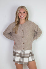 Malaya Wrap Front Plaid Skort, Taupe/Brown