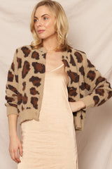 Ada Leopard Print Cardigan Sweater, Brown