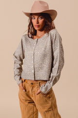 April Leopard Sweater Cardigan, Vintage Oatmeal