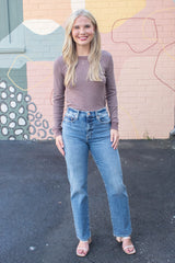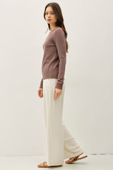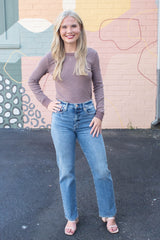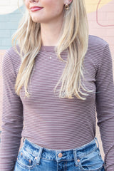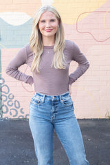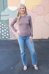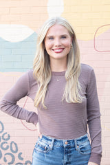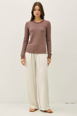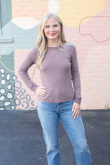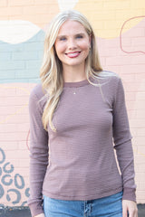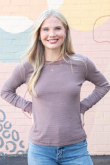 Madelyn Stitched Thermal Top, Brown