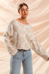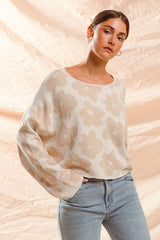 Embrace easygoing style with the Shiloh Loose Fit Flower Sweater. Its playful flower print pops against the oatmeal and ivory hues, while the boat neck adds a breezy touch. Wide, long sleeves flow freely, making every move feel light and carefree. Perfect for layering or wearing solo when you want to keep things effortlessly chic and comfortable!