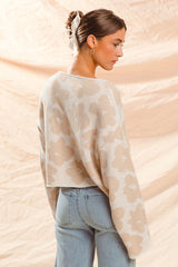 Shiloh Loose Fit Flower Sweater, Oatmeal/Ivory