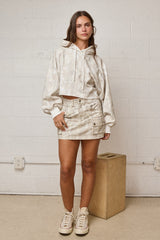 Beth Cropped Camo Hoodie, White Camo
