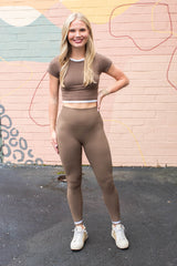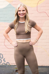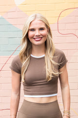 The Sandra Muscle Tank in Latte is your new go-to for effortless style and comfort. Featuring a round neck and playful contrast stripe trim, it adds a fun twist to your workout wardrobe. With short sleeves and built-in support from its double-layer ribbed knit, it keeps you confident and comfortable whether you're striking a yoga pose or running errands. Embrace your active lifestyle with a tank that’s as lively as you are!