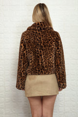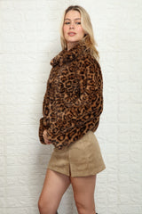 Animal Printed Mink Faux Fur Jacket, Tan Brown Cheetah