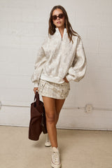 Layer up with our half-zip long sleeve in a bold camo print that's ready for anything. Whether you're heading out for an adventure or just vibing at home, this sweatshirt keeps things casual and cool. The half-zip design gives you easy temperature control, so you can adjust your comfort on the fly. Perfect for mixing and matching with your favorite pieces.