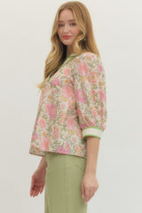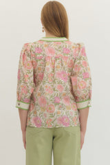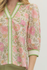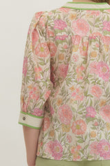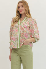 The Eloise Blouse in Ecru is your new go-to for effortless style. This charming piece features three-quarter sleeves with eye-catching contrast trim that adds just the right amount of personality. Perfect for layering or wearing solo, it transitions seamlessly from casual weekends to polished workdays. The soft, neutral ecru tone pairs beautifully with everything in your closet, making it a versatile wardrobe essential that never goes out of style.