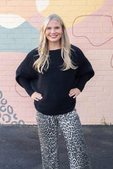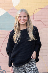 Wrap yourself in cozy charm with the Lily Batwing Boat Neck Sweater in black. Its oversized fit and batwing long sleeves give you plenty of room to move—and groove—while the classic boat neck adds a touch of elegance. Perfect for relaxed days or playful evenings, this pullover is your new go-to for effortless style and comfort!