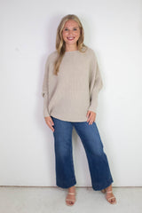 Wrap yourself in cozy charm with the Lily Batwing Boat Neck Sweater in light taupe. Its oversized fit and batwing long sleeves give you plenty of room to move—and groove—while the classic boat neck adds a touch of elegance. Perfect for relaxed days or playful evenings, this pullover is your new go-to for effortless style and comfort!