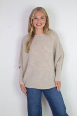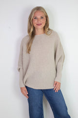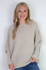 Lily Batwing Boat Neck Sweater, Light Taupe
