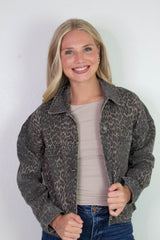Add a wild twist to your wardrobe with the Lorna Leopard Print Denim Jacket. Featuring a cool boxy fit and handy chest and side pockets, it blends style with practicality. Perfect for turning heads and keeping essentials close while embracing your fierce side!
