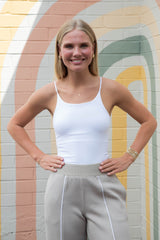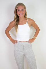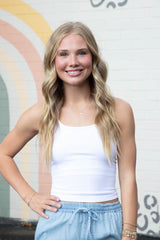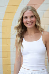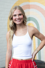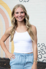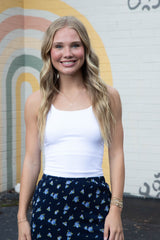 Introducing our Lucille Double Layer Cropped Cami! This top features double layers for extra support and a round neck for comfort. With elastic spaghetti straps, it's perfect for any summer look!