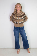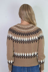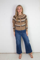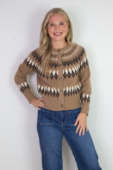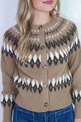 Luna Multicolor Fair Isle Cardigan, Khaki Multi