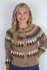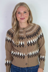 Brighten your wardrobe with the Luna Multicolor Fair Isle Cardigan in Khaki Multi. Featuring a playful blend of colors in a classic Fair Isle pattern, this button-down cardigan offers cozy long sleeves and a comfy round neck. Perfect for layering on chilly days, it adds a fun, vibrant twist to any outfit while keeping you snug and stylish!
