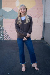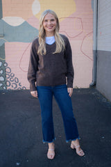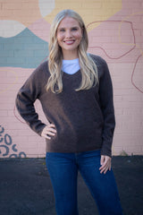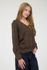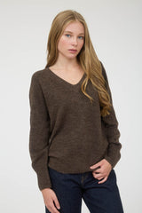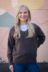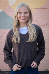 Stay cozy and stylish with the Lyra V-Neck Pullover Sweater in warm brown. Featuring long sleeves and a flattering V-neck, it's perfect for layering or wearing solo on cooler days. Whether you're chasing autumn leaves or sipping your favorite latte, this sweater adds a touch of effortless charm to your outfit!