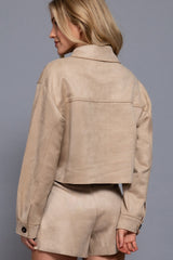 Monet Faux Suede Short Jacket, Sand Taupe