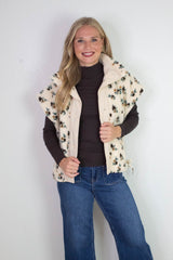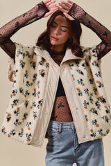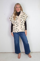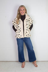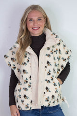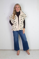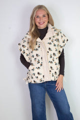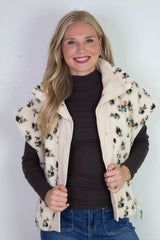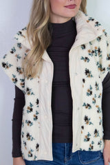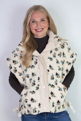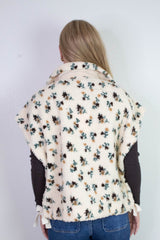 Naomi Floral Oversized Sherpa Vest, Ivory Multi