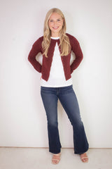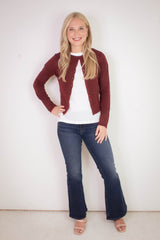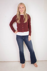 Nia Button Down Cardigan, Burgundy
