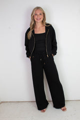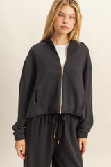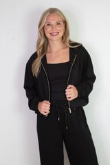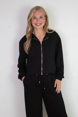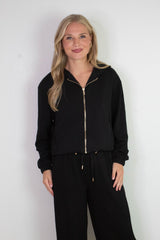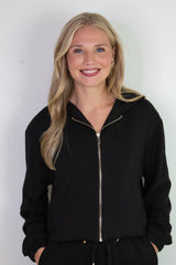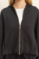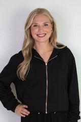 Stay cozy and cute in the Nora Drawstring Hem Hoodie! This black favorite features a zip-up front for easy layering, long sleeves that keep the chill at bay, and handy side pockets for your essentials. The adjustable drawstring hem adds a playful twist and lets you customize your fit for all-day comfort and style!
