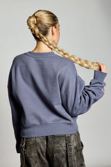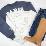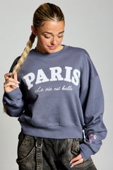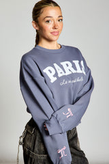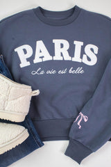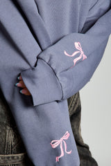 Paris Bow Embroidered Fleece Sweatshirt, Dusty Indigo