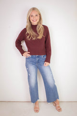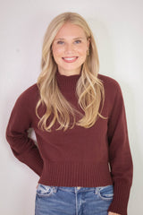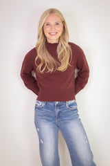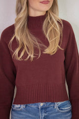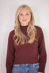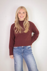 Roxy Mock Neck Rib Detail Sweater, Red Wood