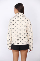 Sherpa Bow Embroidery Jacket, Cream/Black